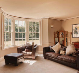 Upstairs, the principal bedroom suite occupies a central position and includes an elegant en-suite bathroom with freestanding Victorian roll-top tub and garden outlook. There are three further bedrooms to the west wing, all generously proportioned and served by a family bathroom. To the east, a suite of four rooms is currently used as office space, each with excellent natural light and character detailing, and with its own WC access. This wing could easily be adapted into a guest suite, additional bedrooms, or self-contained annexe accommodation, subject to preference.