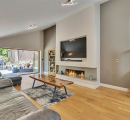 Family Lounge - 7.34m x 4.25m (24'0" x 13'11") - Stepping down into the family lounge room you immediately notice the cosy feel, a perfect place to unwind after a long day, with two double glazed windows to the side and oak bi-fold doors to the side which lead out to the rear garden, the room is flooded with plenty of light and seamlessly blends the inside with the outside of the property. With high quality solid oak flooring and under floor heating and a stunning feature fire place with flame effect gas fire and a fantastic feature wall with TV set into the recess.
