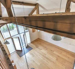 Principal Recording Room - 5.72m x 5.33m (18'9" x 17'5") - With substantial double glazed archway entrance to parking area, feature original heavy timber beams, air conditioning unit and perimeter trunking. Floor to ceiling height approximately 5.7m.