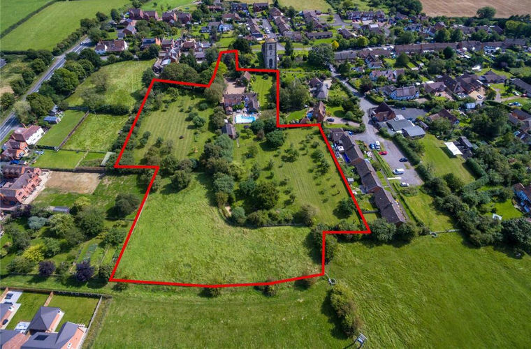 The privacy of the house and gardens is well protected by mature shrubs and trees with the property being set back from the road at the end of a private gravelled drive with a spacious parking area. To the side there is a range of traditional brick and tiled outbuildings which were formerly the old diary buildings and now incorporate a garage, an open fronted carport, garden store and adjacent wood store. The formal gardens lie to the south and west of the property and are laid to lawn running back to the church. There is a paved garden with a mixtures of roses, herbaceous plants and Acers, an attractive raised fish pond and gated access to the church. To the rear there is a wide flagstone terrace with a heated swimming pool and a feature raised brick fish pool. This is a fabulous entertaining area which enjoys the afternoon and evening sun. A Cider Mill which has a wealth of exposed timbers, a flagstone and cobbled floor and the original cider mill and press is attached to the house and has a beautiful vine growing to the elevations. Rose, sweet pea and vine clad trellising screens the pool area from the pool house which incorporates the pool equipment and the air source heat pump which heats the swimming pool. Beside the pool house there is a herb garden. Beyond the garden at the rear there is a wooden stable block with two loose boxes, a tack room and a separate feedstore. The orchard has a wonderful selection of fruit trees to include damson, plum, cherry, apple and pear and there is a separate gated access with vehicular rights of way at all times and for all purposes onto The Furlongs. Also visible is the original moat which has mature willow trees and is a haven for wildlife. To the north of the property there is a further orchard with a vegetable garden and apple and pear together with a selection of other fruit trees as well as walnut and cob nut trees. There is also gated access to an enclosed paddock. The gardens and grounds extend in total to approximately 3.42 acres.