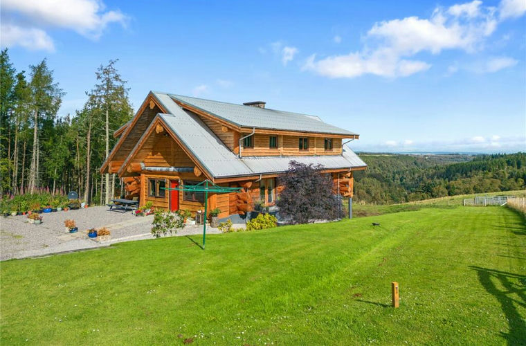 Immaculate four-bedroom hand scribed Pioneer Canadian log home, set over three floors enjoying open country views in the rural location of Daviot, within easy commuting distance of Inverness.