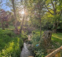 Established gardens with mature and thoughtful planting gives the feeling of being within nature. Dotted with seating areas for sun and shade, formal seating area with stone table and chairs, gardens laid to lawn, borders with a variety of planting, pathways allow a casual saunter through the gardens to the meandering stream with footbridge and pond.