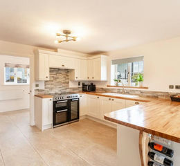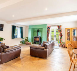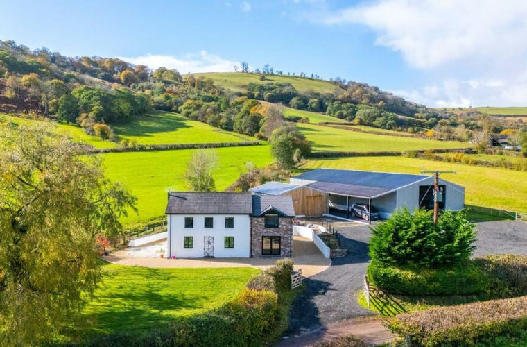 This superbly extended and modernised home offers spacious, versatile and beautifully presented accommodation, perfect for family living and those seeking a touch of countryside charm. On the ground floor, a practical utility room with sink, plumbing for a washing machine and plenty of space for coats and wellies provides the ideal everyday entrance, with a handy cloakroom off. The delightful kitchen/diner is fitted with a range of stylish cupboards, wooden worktops, a range cooker, ceramic sink and integrated dishwasher. Patio doors open to the front, filling the space with light, while French doors connect seamlessly with the generous living room. Here, a feature fireplace with wood-burning stove creates a warm and inviting focal point and there’s also an understairs cupboard offering useful storage. Upstairs are four well-proportioned bedrooms, two of which enjoy striking vaulted ceilings with exposed beams, adding real character. Completing the accommodation is an attractive family bathroom and a separate shower room. Outside, a large parking area leads to a range of outbuildings, including a substantial steel portal barn (13.75m x 27.54m), a garage/barn (8.88m x 8.85m) and a stone store (5.27m x 2.39m). The formal gardens wrap around the house and are made up of decorative chippings, a lawn and a patio seating area, ideal for entertaining or relaxing. The adjoining paddock offers scope for those wishing to keep ponies or other livestock, with a further 9 acres (approx.) are available by separate negotiation.