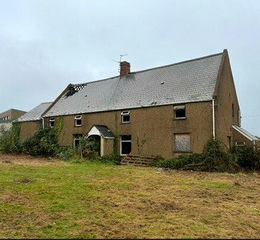 A traditional farmyard residential development site, comprising a farmhouse and agricultural building with planning permission granted for 4 x semi-detached dwellings.