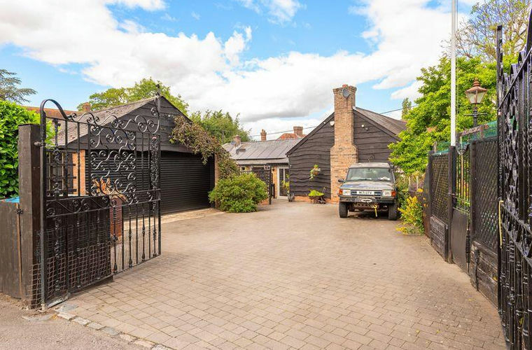 A block paved driveway providing parking for several vehicles. Gates leading to paved garden with Hydra pool and main garden area to side of property.