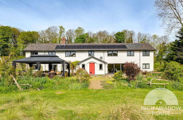 Sheltered from the world down a gated driveway that gently dips, High Meadow House, a quietly extraordinary home, sits wrapped up in eight acres of wildlife-filled gardens, paddocks and woodland creating its own bubble of peace and privacy away from the everyday hustle and bustle.