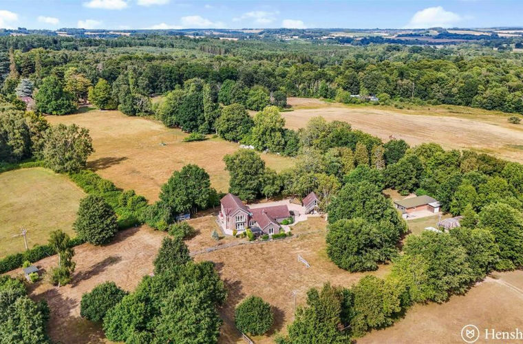 Occupying an enviable position within the sought-after village of Ampfield, this exceptional residence is set within approximately 3 acres of gardens and paddocks. Surrounded by rolling countryside, the home enjoys a tranquil, secluded setting, offering a rare blend of peace, privacy, and accessibility. Thoughtfully designed to offer flexibility of living, the property presents an opportunity to create a self-contained annexe, ideal for multi-generational living or guest accommodation, while also functioning perfectly as a spacious six-bedroom family home. The principal suite is a true retreat, featuring a walk in wardrobe and balcony that takes full advantage of far-reaching southerly countryside views, as well as a four piece en-suite bathroom. There are two further four-piece family bathrooms, and the generous layout includes a sitting room, study, snug, and a stunning kitchen/dining/family room, complemented by a utility room. The grounds host an impressive range of outbuildings, including a double garage with room above (ideal for office or studio use) a substantial barn, a charming lodge, a potting shed and an additional garage with two attached rooms. This unique home offers country living at its finest, combining space, versatility, and natural beauty in a truly special setting.