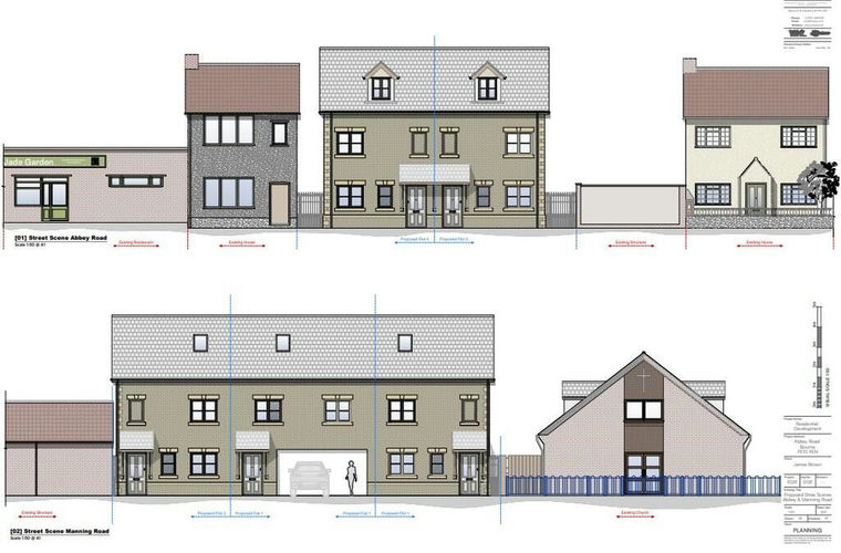 59 Abbey Road is an existing house located adjacent to the land being marketed for sale, marked in blue on the attached site plan for reference. The sellers plan to retain and refurbish the house and they will also retain an area of garden and two car parking spaces to the rear (North) of 59 Abbey Road, also marked in blue. The barns to the rear of the property will not be retained by the sellers and, as per the proposed development plan, can be demolished to make way for the residential development. The extent of the site marketed For Sale is edged in red on the attached site plan.