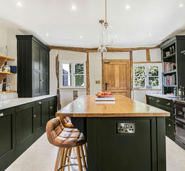 Inside, the property features four elegant reception rooms including; spacious family/dining room with a brick fireplace housing a wood burning stove, living room with twin French doors leading out to the rear gardens and a further brick fireplace housing a wood burning stove, a charming snug with French doors overlooking and leading out to the rear gardens and a good sized study including bespoke hand built bookcases. The kitchen which was also hand built, has been finished to an exceptionally high standard and comprises an island breakfast bar, range of work surfaces with storage below, range of integrated appliances, an electric Total Control Aga and a door to a well equiped utility room. There is also a cloakroom completing the ground floor.
