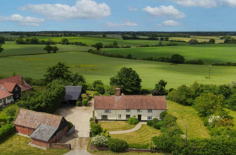 An impressive and beautifully presented substantial four bedroom detached listed grade II farmhouse offering spacious living accommodation, boasting a wealth of period features throughout, an array of versatile outbuildings and benefitting from generous gardens and grounds and stunning far reaching countryside views. All located on the outskirts of the popular and vibrant Market town of Hadleigh.