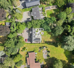 Off to the left of the hallway there is a useful cloaks cupboard, a family bathroom comprising a three piece suite, the current master suite which features a walk-in wardrobe, en-suite bathroom with three piece suite and a floor-to-ceiling glass door with full length glazed side panels. Another large room currently set up as a study with fitted shelving and cupboard space could also lend itself to very easily becoming the fifth bedroom if required also featuring a door leading to the rear garden.