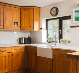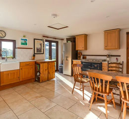 KITCHEN/DINING ROOM A good sized room with country views and a pair of glazed doors opening to the terrace. Fitted with a range of oak-fronted cupboards with marble worksurfaces and ceramic sink unit with mixer tap. Space for a range-style cooker and for fridge freezer.