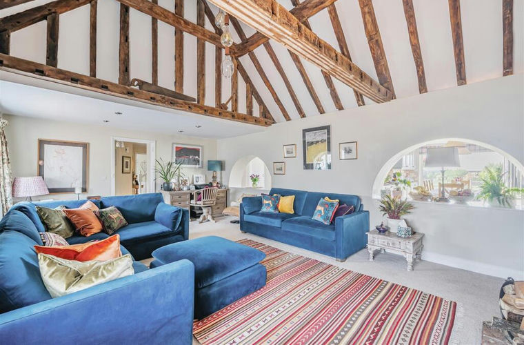 At the heart of the property is a spacious sitting room with a vaulted ceiling and wood-burning stove, creating a warm and welcoming atmosphere. The layout is thoughtfully designed to offer versatility, with ample space for working from home. A bespoke converted barn provides the ideal space for a home office, guest accommodation, or annexe, while a stable block and tack room offer excellent facilities for equestrian interests. This is a rare opportunity to acquire a home of such character and quality, combining country living with modern comfort.