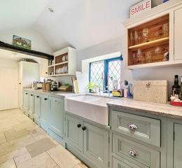 An enchanting and quintessentially English Grade II listed cottage, believed to date back to the 16th Century, rich in history and full of character. Sympathetically renovated, the home blends period charm with modern touches, preserving original features throughout. The front door opens to a welcoming entrance hall, leading to a series of beautifully presented rooms. The cosy sitting room features a magnificent inglenook fireplace with a traditional bread oven, while the bespoke country kitchen includes an Aga and Mandarin stone flooring, combining style with practicality. A triple-aspect dining room offers lovely garden views, complemented by a utility/shower room for everyday convenience. The spacious triple-aspect living room, also with an inglenook fireplace, provides a perfect space to relax, while a separate study offers a quiet work area.