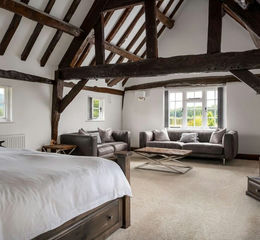 30 acres of Herefordshire bliss - handsome period country house of over 6,600 sq ft with separate Cider House cottage incorporating a stylish games room, an oak frame barn mid conversion to a superb spa complex and the icing on the cake a superbly equipped modern portal barn of over 4,000 sq ft. An exceptional lifestyle pad tucked away amongst countryside just outside Ledbury - watch the trains trundle over the viaduct, grab your tennis racket and head for the court, sip wine on the stunning terrace whilst the kids play in the 30 acres of manicured grounds. This beautiful and impressive house is brimming with character and original features - refurbished to an exceptional standard from top to toe. Absolutely perfect for a sprawling family home and for multi-generational living. 6 reception rooms including a gym, playrooms, sitting rooms, snug and a beautiful country kitchen. The icing on the cake - a brand new portal barn of 4,700 sqft of ground floor space plus mezzanine fully fitted with facilities and with its own driveway - the possibilities are endless - classic cars, run your business from home, house the horses and more.