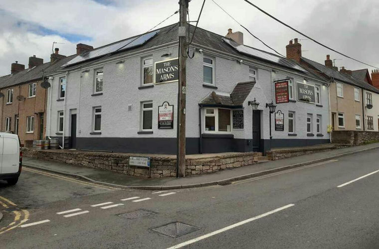 The Masons Arms is a corner terrace property with rendered & painted elevations beneath a pitched slate roof and single storey flat roof additions to the rear.