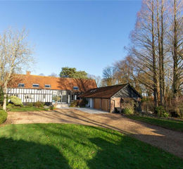 To the front of the barn is a landscaped, gravelled parking area, while the exceptional gardens lie to the east of the property. This beautiful outdoor space incorporates a historic horse pond, expansive lawned areas, and a wealth of mature trees and shrubs, all complemented by a charming summer house.