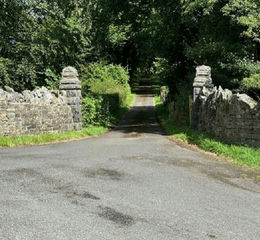 The drive is a particularly feature of the property with its flanking stone gateway opening onto the driveway flanked by specimen beach trees.