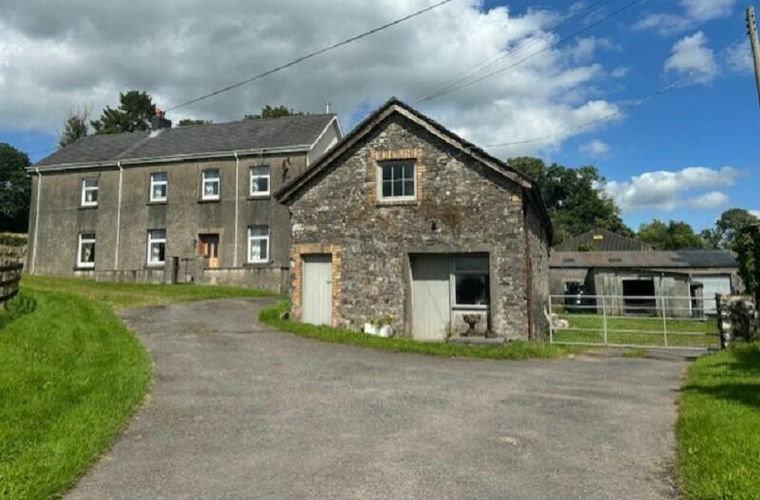Exceptionally well located small farm comprising a traditional stone built farmhouse, mainly stone outbuildings, with much potential and about 54 acres of productive land and woodland.