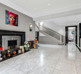 The principal residence extends to over ten thousand square feet and is arranged across four impressive floors. A grand marble floored entrance hall sets the tone, immediately showcasing the attention to detail and architectural presence found throughout the home.