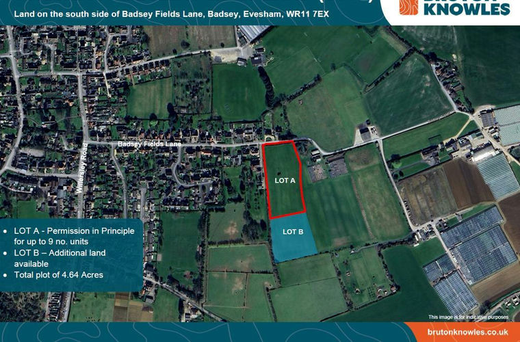 The site is offered in Lots which includes c.2.45 acres immediately accessed off Badsey Fields Lane to the north (Lot A) and the remaining land which is shaded blue on the front page. Offers for part and the whole will be considered, with exact boundaries to be confirmed.