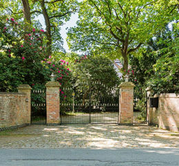 The house is accessed through remote entry gates from Legh Road onto an inner courtyard where there is garaging for three cars. An arch runs past the kitchen to a lovely gravelled front forecourt which accesses the front door and there are ornate front lawns and topiary including a covered walkway which access the gardens beyond. There are several good-sized terraces to the side and rear of the house and the main area of lawn drops away from the house to a lower level, is oval in shape and has some lovely garden structures including ornate borders and tree planting. A number of mature trees sit around the edge of the site and there are 2 ponds. There are large lower level garden cellars underneath the house on the same level as the lower garden.