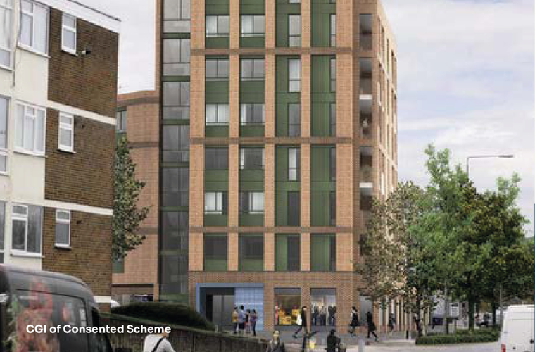 "Construction of a part 3, part 5 and part 8 storey building to facilitate 422.5 m2 of commercial floorspace on the ground, 40 flats above, 7 car parking spaces, including disabled persons' parking, to the rear and two communal gardens, with associated alterations to the public highway along Sewardstone Road, vehicular access from Laurel Gardens, landscaping, refuse/recycling and cycle storage facilities and service areas".
