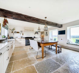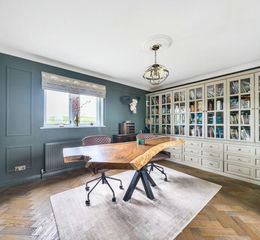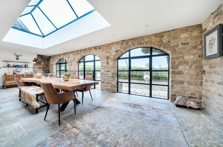 Beautifully restored, this exceptional country residence extends to over 5,500 sq ft of versatile accommodation, seamlessly blending original architectural character with contemporary design and luxurious finishes. Floor-to-ceiling fixed glazing throughout the home frames the ever-changing landscape, flooding the interiors with natural light and creating a constant connection with the outdoors.