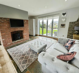 A continuation of the flagstone tiled flooring with under floor heating. Feature brick fireplace with inset electric fire. PVCu bi-folding doors to the front and rear of the property.