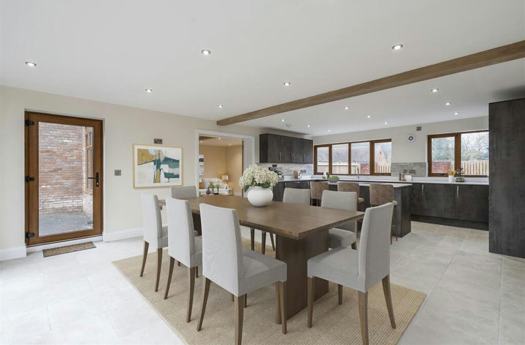 Details - Stepping into the barn, you are immediately wowed by the large open plan kitchen/dining/family room overlooking the rear courtyard, with feature beams, boasting a central island and complemented by double doors opening to the front. There is a guest cloakroom and large utility which also benefits from having access to the outside. Double glass doors open from the kitchen into the lounge, which has French doors opening directly to the courtyard garden.