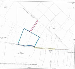 Directions: from the Long Causeway turn right onto Moss Hall Lane, at the end of Moss Hall Lane turn left on to Burnt Edge Lane. At the end of Burnt Edge lane bare right onto Moorcock Road. Pass Moor Hall Farm on your right and the land is the third stock fence wall on your left for 4 metres. Width access along the fields until it joins the 10 Acres.