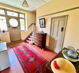 Reception Hall - 3.75m x 2.45m (12'3" x 8'0") - a truly welcoming space with attractive original stained glass fenestration, quarry tiled floor and stairs leading off.