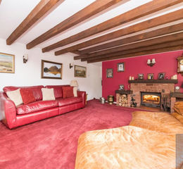 The accommodation extends to over 3,000 sq ft and is arranged with exceptional versatility. A charming oak porch opens into a generous reception hall, forming the heart of the home. The principal sitting room is rich in character, featuring original beams and a striking double-sided glass Scandinavian fireplace, creating warmth and flow between spaces.