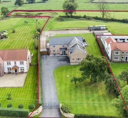 ONE OF THE AREA’S MOST STUNNING LARGE MODERN CONTEMPORARY FAMILY HOMES WITH OVER 6300 SQ FT OF LIVING SPACE SET IN APPROXIMATELY 3 ACRES OF GROUNDS WITH OPEN ASPECTS TOWARDS THE HILLS TO THE REAR. WITH HIGH QUALITY INTERNAL FITTINGS THROUGHOUT THIS ECO-FRIENDLY PROPERTY IS ULTRA ENERGY EFFICIENT INCLUDING THE GROUND SOURCE HEAT PUMP. THE PROPERTY IS ENTERED THROUGH SECURE ELECTRIC GATES LEADING TO A LONG DRIVEWAY AND HAS ACCOMMODATION COMPRISING AN IMPRESSIVE HALLWAY WITH BESPOKE STAIRCASE, CLOAKROOM, DRAWING ROOM, 46 FT OPEN PLAN LIVING KITCHEN WITH BIFOLD DOORS TO TWO SIDES AND A FABULOUS QUALITY KITCHEN WITH INTEGRATED APPLIANCES, DINING ROOM, LARGE GAMES ROOM WITH BIFOLD DOORS, STUDY, UTILITY ROOM, BOOT ROOM, SHOWER ROOM, TO THE FIRST AND SECOND FLOORS THERE ARE 6 IMPRESSIVE BEDROOMS ALL WITH LARGE EN-SUITES. DOUBLE GARAGE. FORMAL GARDENS INCLUDE LARGE PATIO AREAS, LAWNS AND PADDOCKS.
