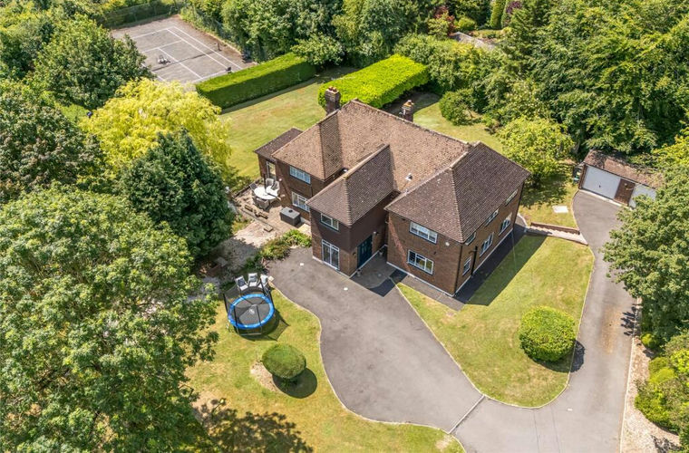 Discreetly nestled at the end of a private 40-metre drive lies this impressive 3,500 sq. ft residence, gracefully positioned on a generous plot of 1.35 acres. Framed by mature woodland and trees, this exceptional home combines tranquillity and privacy with breathtaking views—an idyllic countryside retreat.