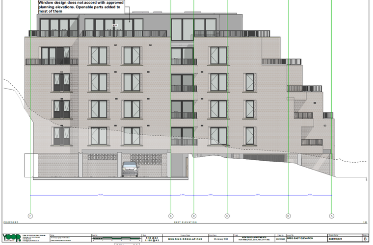 DDC Planning Ref: 19/00287 Erection of a building containing 20 apartments with 14 carparking spaces at ground floor and erection of a retaining wall following demolition of existing retaining wall. The property is situated on the south side of North Military Road, to the west of its junction with Durham Hill. Durham Hill leads onto York Street (A256) which provides direct access onto the A2.