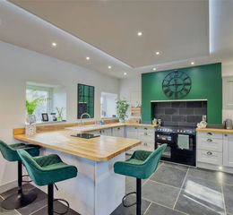 As you enter, you’re greeted by a modern family kitchen and dining room, designed with ample space for gatherings. The large dual-aspect lounge is a highlight of the home, boasting abundant natural light and direct access to the garden, creating an inviting space for relaxation and entertaining.
