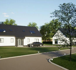 The accommodation of the proposed dwellings are : Reception hall, Large open plan living room, dining area and kitchen, utility room, double bedroom, study room, family bathroom, upstairs, a spacious landing leads to 2 double En-suite bedrooms.