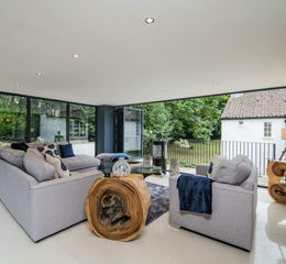 The show stopping triple aspect garden room features fully glazed walls, with two full runs of bi folding doors to bring the outdoors in, providing views of the gardens and woodland beyond. This superb space is a simply magnificent investment made by the current owners which works equally well as a tranquil space for relaxation and a dynamic entertainment area.