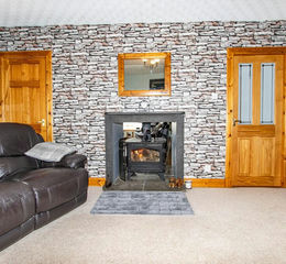 This cosy lounge has a feature papered wall as well as a Caithness flagstone fireplace and hearth with a double-sided Hunter Herald 17 kw multi fuel stove. A carpet has been laid to the floor; there is triple light fitting and central heating radiator. A window faces the front elevation and there is also a built-in cupboard. This room also benefits from a telephone point and has a lovely window seat with additional storage underneath. A door leads to the superb kitchen/family room.