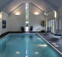 Carefully and considerately maintained by the current owners, the lawns and wrap-around gardens of the property have been landscaped to allow for ample space and enjoyment. There is also a leisure complex attached to the house, with an indoor heated swimming pool, steam room and gym space along with open plan office space above.