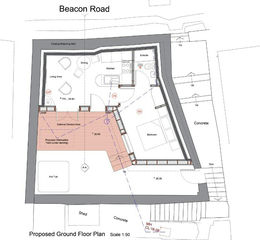 The approved accommodation is designed to comprise an open-plan lounge/kitchen/diner, shower room, and one bedroom. Externally, the plot is accessed via steps leading down from Beacon Road and offers a pleasant decked area, ideal for outdoor seating and enjoyment.