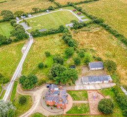 Outside And Outbuildings - The main house is approached via a sweeping gravel driveway from the main road, offering a strong sense of arrival. There’s ample parking around the house itself, alongside a play area bordered by a low brick wall, which could be redesigned as a formal garden space.