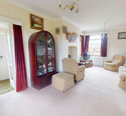 A triple aspect room with upvc double glazed side and rear windows and a large matching bay window at the front with views across the garden to the field and Meldon Hill. The ceiling is high with coving, two pendant light points, two double panel radiators and a raised marble hearth with fitted gas log effect fire with a balanced flue. Glazed double doors lead to a ventilated side lobby and w.c.