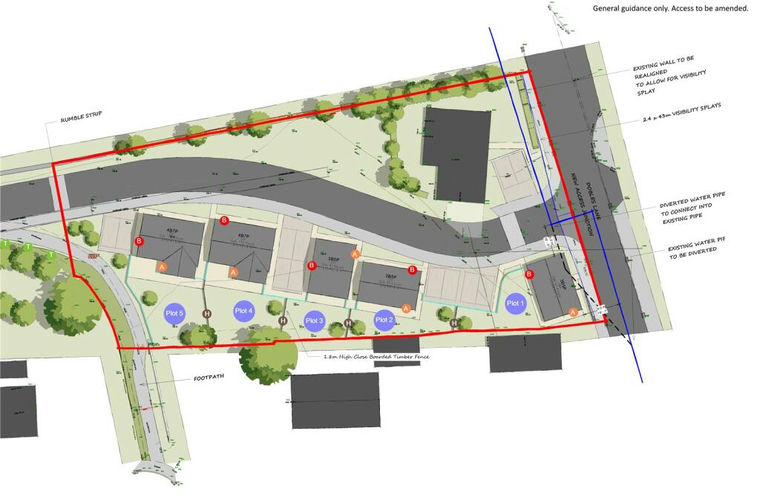 Outline planning permission granted for 5 with all matters reserved except access approved, just over half of an acre in total, well located, close to town amenities. Excellent further potential STPP. High local demand for end product.