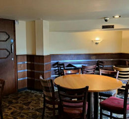 There are half panelled walls, wall light fittings and a plethora of local pictures and artwork throughout the building.