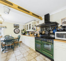 Kitchen/Dining Room - 4.90m x 5.87m (16'1 x 19'3) - Fitted with wall, base, and drawer units with work surfaces over. Range master cooker with multi oven and seven ring hob. One and a half bowl sink with mixer tap and drainer. Part tiled walls. Multi fuel burner set in fireplace. Feature traditional bread oven. Dual aspect uPVC windows. Radiators. Power points. Internal timer door to utility. uPVC door to conservatory.