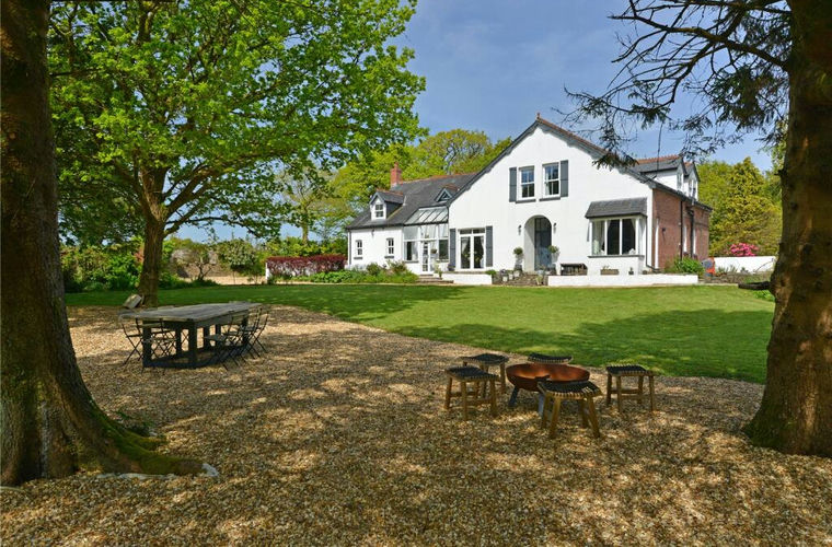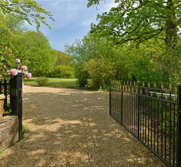 The gardens to the front of the property enjoy a private and south facing aspect, bordered by mature trees and hedges. They are mainly laid to lawn, with a range of seating areas including a gravelled section. A pathway leads to the greenhouse, potting shed and raised vegetable beds with some fruit trees. There is a pavilion with built-in barbecue and seating area, and also a five bar gate which gives access to the paddock.