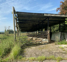 Former Dairy of stone and corrugated construction with adjoining cattle shed of part stone, brick and timber walls beneath a corrugated roof