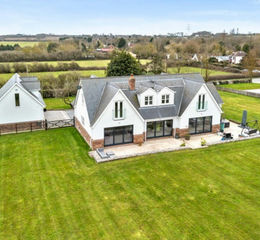 The property sits within a superb plot of just over one acre (subject to survey), forming a standout feature of this impressive contemporary home. Set well back from the road, a sweeping driveway passes between attractive brick pillars, with potential for electric gates, and leads to a generous parking area beyond and detached double garage. Gated side access is available to both sides of the house, while the rear and side gardens provide excellent space and future potential. Established trees and shrubs create a pleasing sense of maturity and privacy, complemented by patio areas ideal for relaxing and enjoying views across the gardens.